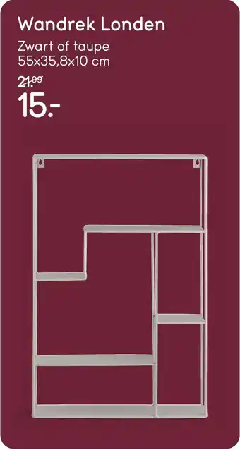 De prijs van de Wandrek Londen kan ook teruggevonden worden hierboven op de pagina, samen met de datum van wanneer de aanbieding beschikbaar is. Ook kun je de prijzen in de huidige Leen Bakker folder of op de Leen Bakker website controleren. De aanbiedingen verzekeren je van het kopen van de Leen Bakker producten voor de laagste prijs.