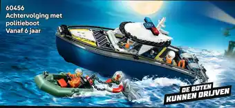 Met de set 60456 kunnen kinderen vanaf 6 jaar genieten van spannende avonturen op het water. De politieboot kan echt drijven en is uitgerust met alles wat nodig is voor een achtervolging. Laat de verbeelding van kinderen tot leven komen terwijl ze de boeven proberen te vangen met deze stoere politieboot. De set bevat gedetailleerde instructies voor het bouwen van de boot, waardoor kinderen hun bouwvaardigheden kunnen verbeteren. De achtervolging met de politieboot zorgt voor uren speelplezier en stimuleert creatief denken en rollenspel. Laat kinderen hun eigen verhalen bedenken en beleef samen spannende avonturen op het water met deze leuke en interactieve set DE BOTEN.