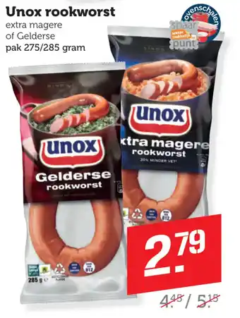 Unox Gelderse rookworst, extra magere, pak 275/285 gram