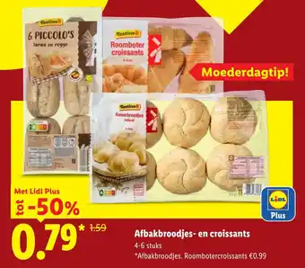 Verwen je moeder op Moederdag met heerlijke afbakbroodjes en croissants van Lidl. Met Lidl Plus ontvang je extra korting op deze lekkernijen. Kies uit 4-6 stuks roomboter croissants, 6 Piccolo's Kaiserbroodjes of naturel afbakbroodjes van tarwe en rogge. De afbakbroodjes en croissants zijn eenvoudig te bereiden en zorgen voor een heerlijk ontbijt of brunch. Voor slechts €0.99 geniet je al van de smaak van verse, warme broodjes. Profiteer van deze aanbieding en verras je moeder met een heerlijk ontbijt op bed. Download de Lidl Plus app en haal de afbakbroodjes en croissants voordelig in huis. *Aanbieding geldig t/m Moederdag.