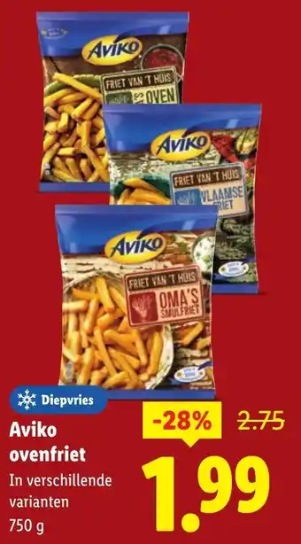Lidl biedt naast de Aviko ovenfriet een ruime collectie producten aan. Houd de wekelijkse Lidl folder in de gaten om de beste aanbiedingen en acties te vinden. Naast Aviko ovenfriet, kunt u ook de volgende aanbiedingen vinden: Aviko Opa's Ovenfriet, Aviko Opa's Ovenfriet & McCain 1-2-3 ovenfriet.