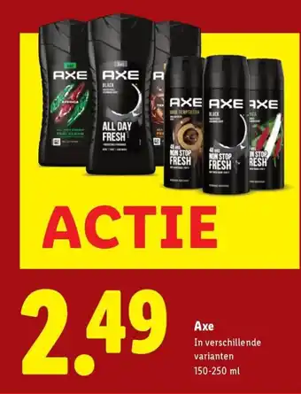 Lidl biedt naast de Axe een ruime collectie producten aan. Houd de wekelijkse Lidl folder in de gaten om de beste aanbiedingen en acties te vinden. Naast Axe, kunt u ook de volgende aanbiedingen vinden: Axe douchegel, Axe Deodorant & Axe douchepomp.