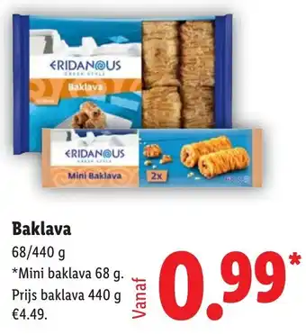 De prijs van de Baklava kan ook teruggevonden worden hierboven op de pagina, samen met de datum van wanneer de aanbieding beschikbaar is. Ook kun je de prijzen in de huidige Lidl folder of op de Lidl website controleren. De aanbiedingen verzekeren je van het kopen van de Lidl producten voor de laagste prijs.