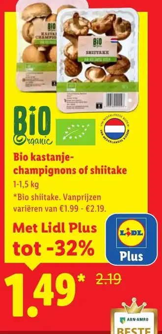 Bio kastanje champignons of shiitake korting bij Lidl