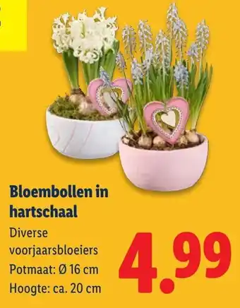 De prijs van de Bloembollen in Hartschaal kan ook teruggevonden worden hierboven op de pagina, samen met de datum van wanneer de aanbieding beschikbaar is. Ook kun je de prijzen in de huidige Lidl folder of op de Lidl website controleren. De aanbiedingen verzekeren je van het kopen van de Lidl producten voor de laagste prijs.