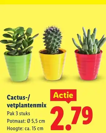 De prijs van de Cactus-/ vetplantenmix kan ook teruggevonden worden hierboven op de pagina, samen met de datum van wanneer de aanbieding beschikbaar is. Ook kun je de prijzen in de huidige Lidl folder of op de Lidl website controleren. De aanbiedingen verzekeren je van het kopen van de Lidl producten voor de laagste prijs.