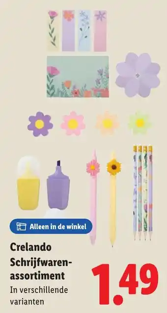 Lidl biedt naast de Crelando Schrijfwaren Assortiment een ruime collectie producten aan. Houd de wekelijkse Lidl folder in de gaten om de beste aanbiedingen en acties te vinden. Naast Crelando Schrijfwaren Assortiment, kunt u ook de volgende aanbiedingen vinden: Crelando Schrijfwaren assortiment, Schrijfwaren- assortiment & Stabilo Schrijfwaren Assortiment.