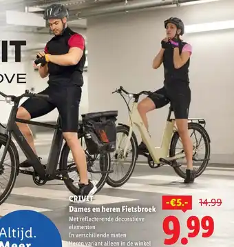Crivit dames en heren fietsbroek aanbieding en online acties bij Lidl