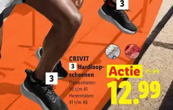 De CRIVIT 3 hardloopschoenen zijn ideaal voor zowel dames als heren. De schoenen zijn verkrijgbaar in damesmaten 36 t/m 41 en herenmaten 41 t/m 46. Deze comfortabele en duurzame schoenen zijn perfect voor zowel beginnende als ervaren hardlopers. De schoenen bieden goede ondersteuning en demping, waardoor je blessures kunt voorkomen en optimaal kunt presteren tijdens het hardlopen. Dankzij de goede pasvorm en het ademende materiaal zitten de schoenen als gegoten en blijven je voeten koel en droog. En het beste van alles is dat deze kwalitatieve hardloopschoenen nu in de actie zijn voor slechts $15.99 voor dames en $12.99 voor heren. Mis deze kans niet en haal snel jouw CRIVIT 3 hardloopschoenen in huis!