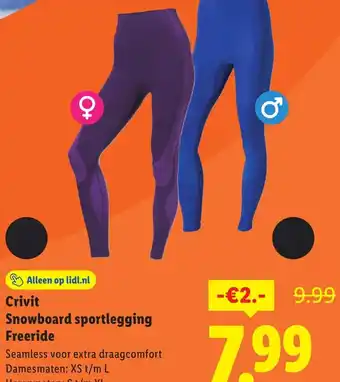 De prijs van de Crivit Snowboard sportlegging Freeride kan ook teruggevonden worden hierboven op de pagina, samen met de datum van wanneer de aanbieding beschikbaar is. Ook kun je de prijzen in de huidige Lidl folder of op de Lidl website controleren. De aanbiedingen verzekeren je van het kopen van de Lidl producten voor de laagste prijs.