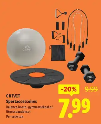 Ontdek de hoogwaardige CRIVIT sportaccessoires met 20% korting! Kies uit een balance board, gymnastiekbal of fitnessbandenset. Elk stuk is van topkwaliteit en perfect voor het verbeteren van je fitnessroutine. Het balance board helpt bij het versterken van je core en balans, terwijl de gymnastiekbal ideaal is voor het verbeteren van stabiliteit en flexibiliteit. De fitnessbandenset biedt een volledige lichaamstraining en is geschikt voor zowel beginners als gevorderden. Met een gewicht van 2KG per set zijn deze accessoires gemakkelijk mee te nemen en op te bergen. Profiteer nu van de aanbieding en haal jouw CRIVIT sportaccessoires voor slechts €7.99 per stuk!