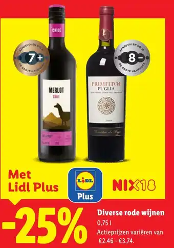 Diverse Rode Wijnen -25% met Lidl Plus