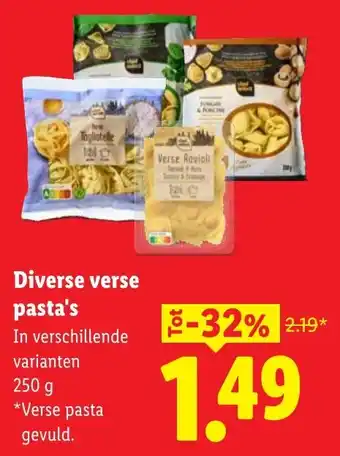Neem een kijkje voor de goedkoopste producten tussen alle aanbiedingen! Als je wilt weten of Lidl de hoogste korting voor Diverse Verse Pasta's heeft, vergelijk het op de Topic page of met andere winkels.