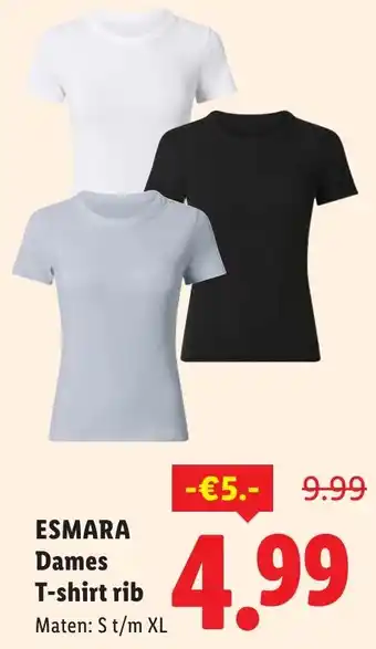 Esmara Dames T-shirt rib in maten S t/m XL voor slechts €4.99