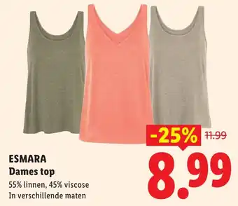 De prijs van de Esmara dames top kan ook teruggevonden worden hierboven op de pagina, samen met de datum van wanneer de aanbieding beschikbaar is. Ook kun je de prijzen in de huidige Lidl folder of op de Lidl website controleren. De aanbiedingen verzekeren je van het kopen van de Lidl producten voor de laagste prijs.