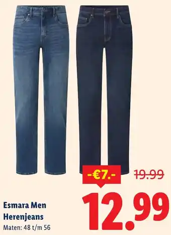 De prijs van de Esmara Men Herenjeans kan ook teruggevonden worden hierboven op de pagina, samen met de datum van wanneer de aanbieding beschikbaar is. Ook kun je de prijzen in de huidige Lidl folder of op de Lidl website controleren. De aanbiedingen verzekeren je van het kopen van de Lidl producten voor de laagste prijs.