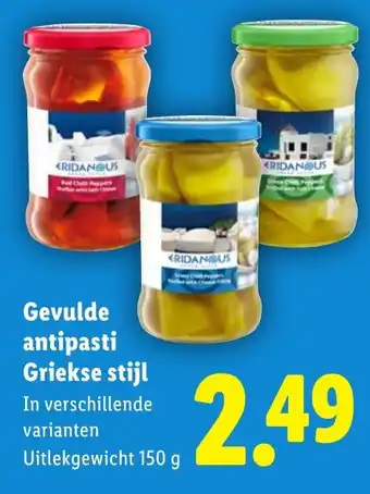 De prijs van de Gevulde antipasti Griekse stijl kan ook teruggevonden worden hierboven op de pagina, samen met de datum van wanneer de aanbieding beschikbaar is. Ook kun je de prijzen in de huidige Lidl folder of op de Lidl website controleren. De aanbiedingen verzekeren je van het kopen van de Lidl producten voor de laagste prijs.