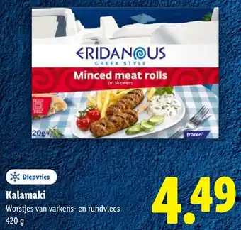 Diepvries Kalamaki worstjes van varkens- en rundvlees 20g