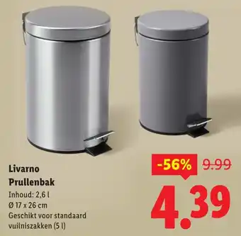 De prijs van de Livarno Prullenbak kan ook teruggevonden worden hierboven op de pagina, samen met de datum van wanneer de aanbieding beschikbaar is. Ook kun je de prijzen in de huidige Lidl folder of op de Lidl website controleren. De aanbiedingen verzekeren je van het kopen van de Lidl producten voor de laagste prijs.