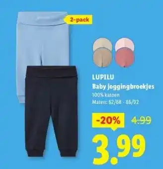 De prijs van de LUPILU Baby joggingbroekjes kan ook teruggevonden worden hierboven op de pagina, samen met de datum van wanneer de aanbieding beschikbaar is. Ook kun je de prijzen in de huidige Lidl folder of op de Lidl website controleren. De aanbiedingen verzekeren je van het kopen van de Lidl producten voor de laagste prijs.