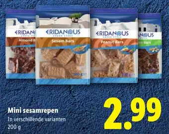 De Mini Sesamrepen is momenteel met korting verkrijgbaar bij Lidl. Hier vind je alle details over prijs, geldigheidsduur en actievoorwaarden. Vergeet niet om ook andere aanbiedingen en deals voor Mini Sesamrepen te bekijken zodat je zeker weet dat je de beste prijs betaalt. De kortingsactie loopt van 27-04-2026 tot 03-05-2026. Is de actie inmiddels verlopen? Geen zorgen, vergelijk dan soortgelijke aanbiedingen of volg de productcategorie voor toekomstige prijsverlagingen. Zo koop je altijd met voordeel.Veelgestelde vragen over Mini Sesamrepen