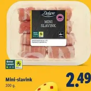 Deze Mini-slavink is nu in de aanbieding bij Lidl. Op deze pagina vind je alle informatie over actuele prijzen, actievoorwaarden en looptijd. Vergelijk ook andere relevante aanbiedingen en acties rondom Mini-slavink, zodat je altijd de slimste keuze maakt. De aanbieding loopt van 06-03-2026 tot en met 06-04-2026. Is de actie verlopen? Geen probleem – vergelijkbare deals vind je altijd via deze pagina. Volg eventueel de productcategorie om automatisch op de hoogte te blijven van nieuwe aanbiedingen of prijsdalingen voor Mini-slavink.Veelgestelde vragen over Mini-slavink