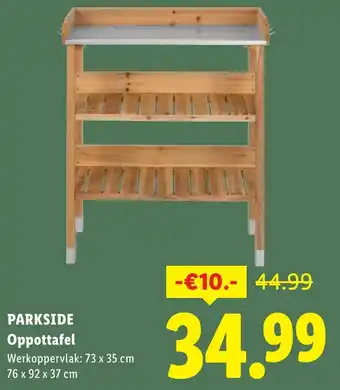De PARKSIDE Oppottafel is ideaal voor het verpotten van planten en bloemen. Het werkoppervlak van 73 x 35 cm biedt voldoende ruimte om comfortabel te werken. Met een afmeting van 76 x 92 x 37 cm is deze oppottafel compact en past hij in elke tuin of balkon. De tafel is nu verkrijgbaar met een korting van €10.-, waardoor de prijs slechts €34.99 is. Dankzij het stevige materiaal en de stabiele constructie is de oppottafel duurzaam en geschikt voor langdurig gebruik. Maak het tuinieren gemakkelijker en leuker met de PARKSIDE Oppottafel. Bestel hem nu en geniet van het gemak van een eigen oppottafel in je tuin.