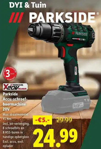Parkside Accu-schroef-boormachine 20V - 3 jaar garantie