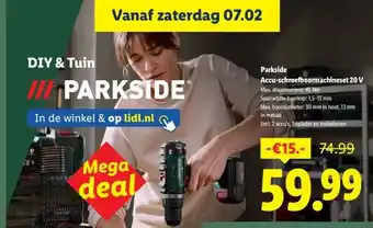 Nu in de aanbieding bij Lidl: Parkside Accu-schroefboormachineset 20 V✅ Actie geldig van 4-02 t/m 8-02.