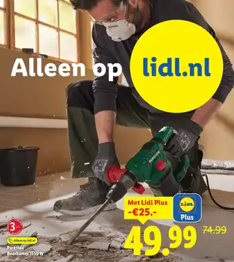 De Parkside Boorhamer 1550 W is een krachtige en veelzijdige boorhamer die exclusief verkrijgbaar is op lidl.nl. Met een vermogen van 1550 W en TIE technologie is deze boorhamer ideaal voor het boren in verschillende materialen. Dankzij de GARANTIE van 3 jaar ben je verzekerd van kwaliteit en duurzaamheid. Met Lidl Plus ontvang je nog eens €25.- korting op de toch al scherpe prijs van €49.99. Profiteer nu van deze aanbieding en haal de Parkside Boorhamer in huis voor slechts €74.99. Met de Parkside Boorhamer ben je verzekerd van professionele resultaten en een uitstekende prijs-kwaliteitverhouding. Bestel hem nu online op lidl.nl en profiteer van de voordelen van Lidl Plus!