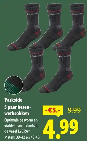 Parkside 5 paar heren werksokken - €5.-
