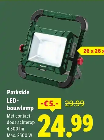 De prijs van de Parkside LED- bouwlamp kan ook teruggevonden worden hierboven op de pagina, samen met de datum van wanneer de aanbieding beschikbaar is. Ook kun je de prijzen in de huidige Lidl folder of op de Lidl website controleren. De aanbiedingen verzekeren je van het kopen van de Lidl producten voor de laagste prijs.