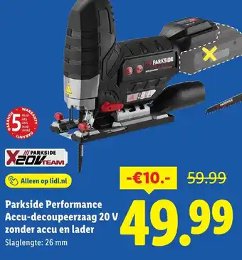 Koop Parkside Performance Accu decoupeerzaag 20 V zonder accu en lader komende week met korting