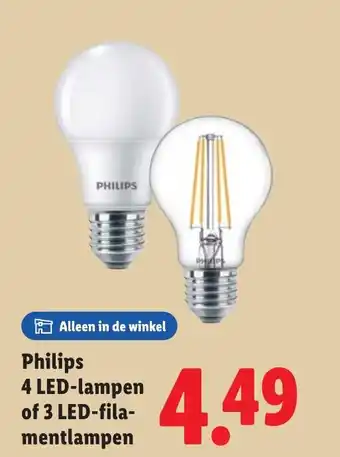 Nu in de aanbieding bij Lidl: Philips 4 LED-lampen of 3 LED-filament lampen✅ Actie geldig van 30-12 t/m 4-01.