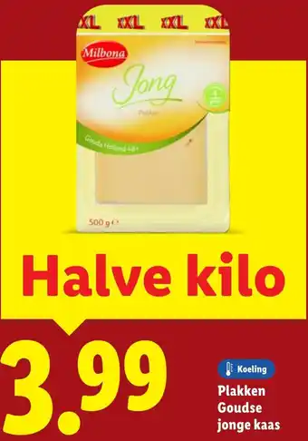 Milbona Goudse jonge kaas plakken XL 48+ - Halve kilo