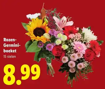 De prijs van de Rozen Germini Boeket kan ook teruggevonden worden hierboven op de pagina, samen met de datum van wanneer de aanbieding beschikbaar is. Ook kun je de prijzen in de huidige Lidl folder of op de Lidl website controleren. De aanbiedingen verzekeren je van het kopen van de Lidl producten voor de laagste prijs.