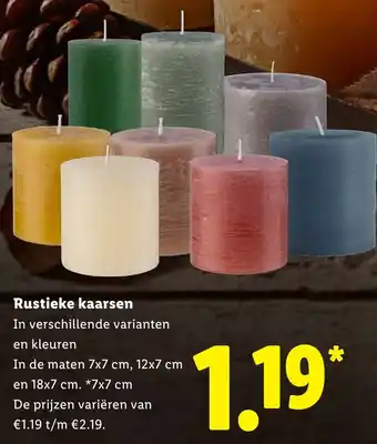 De prijs van de Rustieke kaarsen kan ook teruggevonden worden hierboven op de pagina, samen met de datum van wanneer de aanbieding beschikbaar is. Ook kun je de prijzen in de huidige Lidl folder of op de Lidl website controleren. De aanbiedingen verzekeren je van het kopen van de Lidl producten voor de laagste prijs.