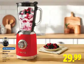 De Silvercrest Blender is een krachtige keukenhulp met 5 verschillende snelheden en een pulse-functie. Met een inhoud van 1,75 liter kun je gemakkelijk smoothies, soepen en sauzen bereiden voor het hele gezin. Deze blender van Silvercrest is alleen verkrijgbaar in de winkel en heeft een stijlvol design dat in elke keuken past. Dankzij de robuuste constructie en de hoogwaardige materialen gaat deze blender jarenlang mee. Voor slechts €29.99 haal je deze kwaliteitsblender in huis, die al sinds 1973 bekend staat om zijn betrouwbaarheid en prestaties. Maak vanaf nu moeiteloos de lekkerste gerechten en geniet van de veelzijdigheid van de Silvercrest Blender.