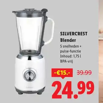 De SILVERCREST Blender is een krachtige keukenhulp met 5 snelheden en een pulse-functie, waarmee je moeiteloos smoothies, soepen en sauzen kunt bereiden. Met een inhoud van 1,75 liter en BPA-vrije materialen is deze blender niet alleen handig, maar ook veilig in gebruik. En het beste van alles? Je bespaart nu €15.-, waardoor je deze kwaliteitsblender kunt aanschaffen voor slechts €24.99 in plaats van €39.99. Met een vermogen van 2.000 watt en een contact-, is deze blender geschikt voor zowel dagelijks gebruik als voor speciale gelegenheden. Haal nu de SILVERCREST Blender in huis en geniet van heerlijke zelfgemaakte gerechten en drankjes!