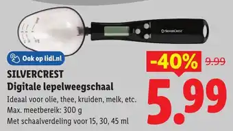 De prijs van de Silvercrest Digitale lepelweegschaal kan ook teruggevonden worden hierboven op de pagina, samen met de datum van wanneer de aanbieding beschikbaar is. Ook kun je de prijzen in de huidige Lidl folder of op de Lidl website controleren. De aanbiedingen verzekeren je van het kopen van de Lidl producten voor de laagste prijs.