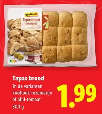 De prijs van de Tapas brood kan ook teruggevonden worden hierboven op de pagina, samen met de datum van wanneer de aanbieding beschikbaar is. Ook kun je de prijzen in de huidige Lidl folder of op de Lidl website controleren. De aanbiedingen verzekeren je van het kopen van de Lidl producten voor de laagste prijs.