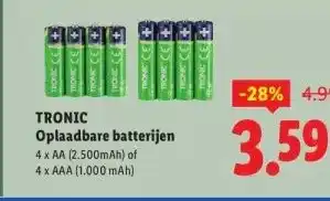 Nu in de aanbieding bij Lidl: TRONIC Oplaadbare batterijen4 x AA (2.500mAh) of 4 x AAA (1.000 mAh)✅ Actie geldig van 23-02 t/m 1-03.