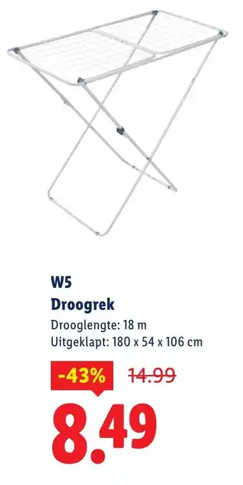Neem een kijkje voor de goedkoopste producten tussen alle aanbiedingen! Als je wilt weten of Lidl de hoogste korting voor W5 Droogrek heeft, vergelijk het op de Topic page of met andere winkels.