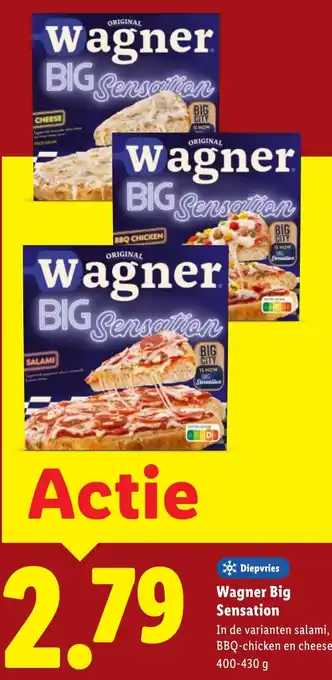 Wagner Big Sensation: Diepvries pizza's in salami, BBQ-chicken en cheese varianten