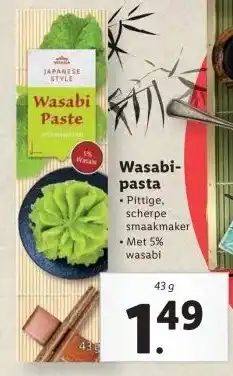 De prijs van de Wasabi- pasta kan ook teruggevonden worden hierboven op de pagina, samen met de datum van wanneer de aanbieding beschikbaar is. Ook kun je de prijzen in de huidige Lidl folder of op de Lidl website controleren. De aanbiedingen verzekeren je van het kopen van de Lidl producten voor de laagste prijs.