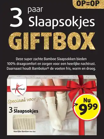 De prijs van de 3 paar Slaapsokjes kan ook teruggevonden worden hierboven op de pagina, samen met de datum van wanneer de aanbieding beschikbaar is. Ook kun je de prijzen in de huidige Lucovitaal folder of op de Lucovitaal website controleren. De aanbiedingen verzekeren je van het kopen van de Lucovitaal producten voor de laagste prijs.