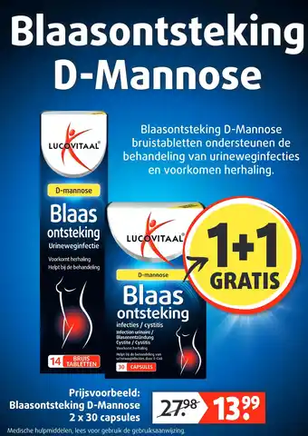 De prijs van de Blaasontsteking D-Mannose kan ook teruggevonden worden hierboven op de pagina, samen met de datum van wanneer de aanbieding beschikbaar is. Ook kun je de prijzen in de huidige Lucovitaal folder of op de Lucovitaal website controleren. De aanbiedingen verzekeren je van het kopen van de Lucovitaal producten voor de laagste prijs.