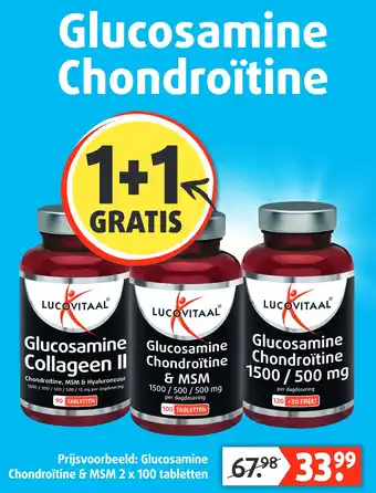 Lucovitaal biedt naast de Glucosamine een ruime collectie producten aan. Houd de wekelijkse Lucovitaal folder in de gaten om de beste aanbiedingen en acties te vinden. Naast Glucosamine, kunt u ook de volgende aanbiedingen vinden: Glucosamine Chondroïtine, Glucosamine-MSM - Chondroitine & Lamberts Glucosamine 1100 120TB.
