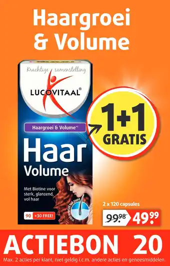 Lucovitaal biedt naast de Haargroei & Volume een ruime collectie producten aan. Houd de wekelijkse Lucovitaal folder in de gaten om de beste aanbiedingen en acties te vinden. Naast Haargroei & Volume, kunt u ook de volgende aanbiedingen vinden: Hairfusion haargroei tabletten 60tb, Volume500 Tabletten 30st & Hair Volume.