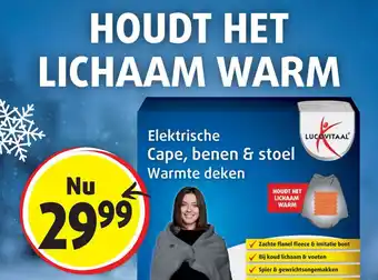 Lucovitaal Elektrische Cape, benen & stoel Warmte deken aanbieding bij Lucovitaal – binnenkort verwacht
